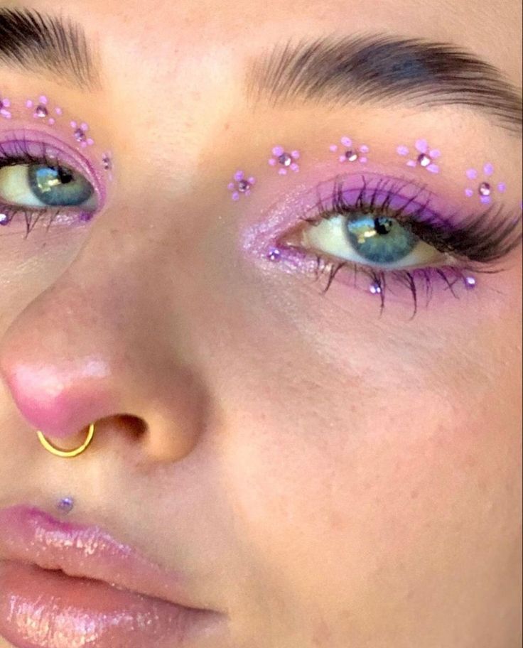 5. And if all of those looks are just too “extreme” or you do not feel like you can do all those colors-that’s okay. Know that not being symmetrical is the whole idea. Being imperfect is the whole goal. But I get it. It’s not everyone’s vibe- you can do the “clean girl” look and then just do pop’s of jewels, stickers, or glitter.