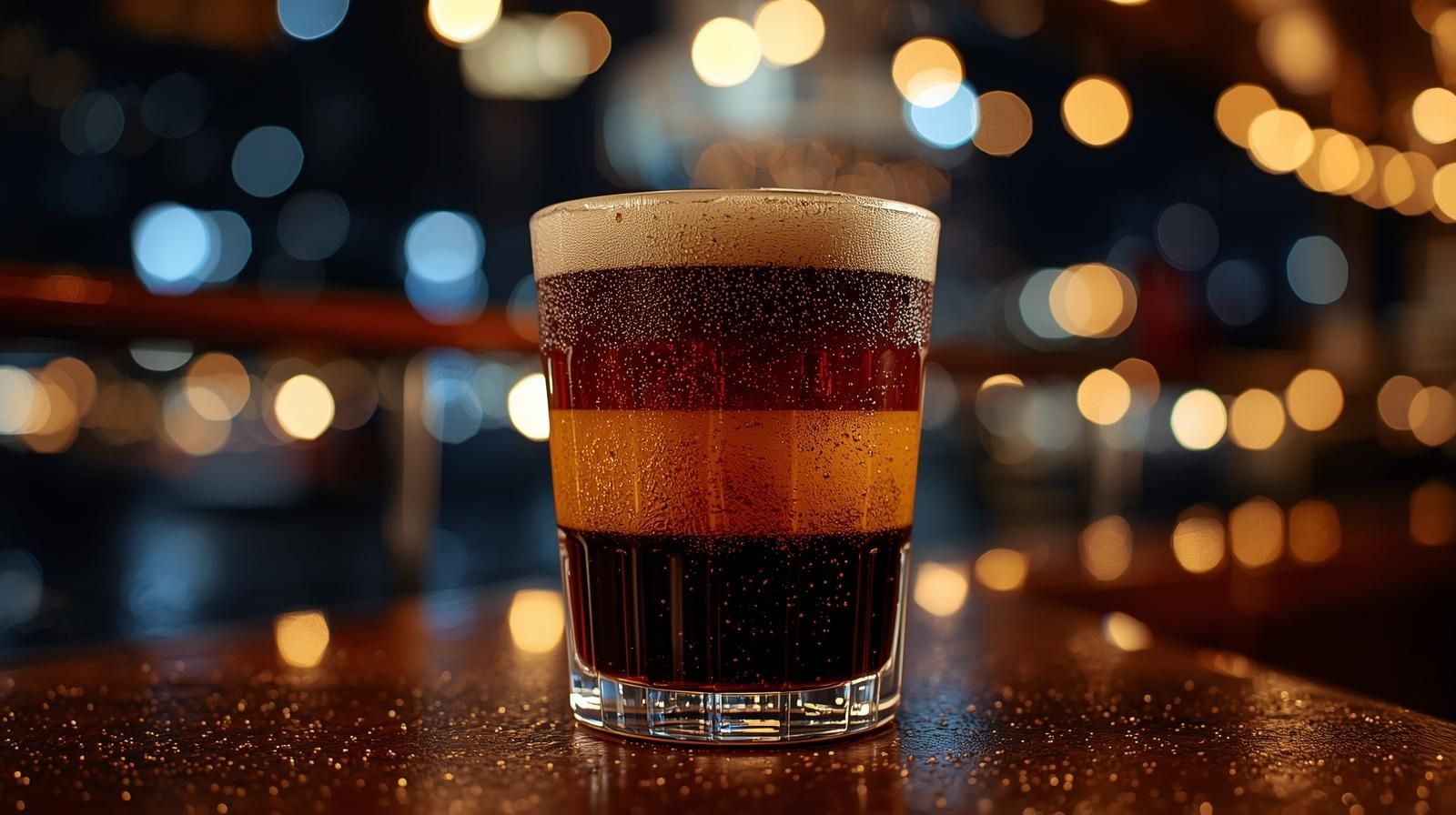 Pour stout and sparkling wine side by side in a glass for a layered effect.